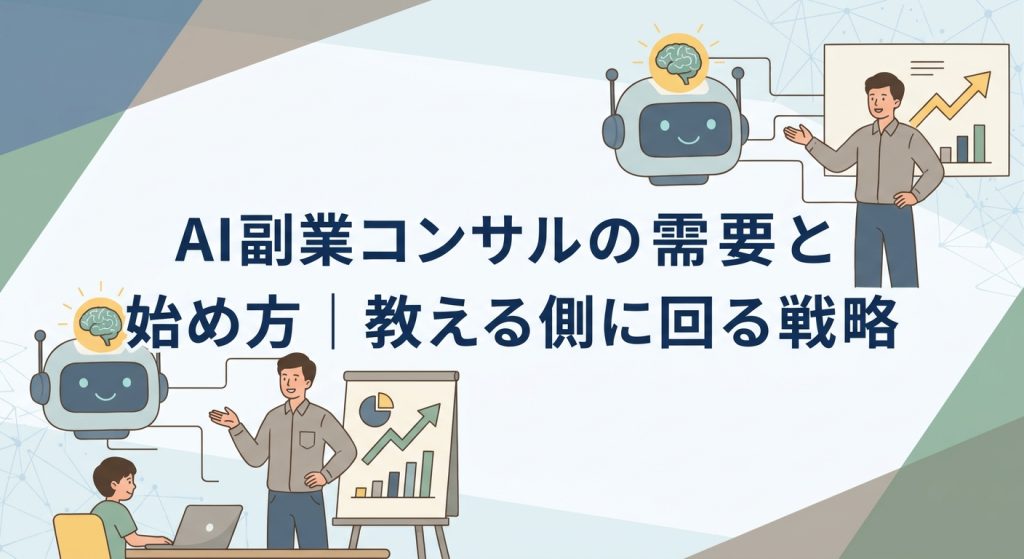 この記事では、AI副業の中でも「コンサル・講師」というポジションで収益を得る道について、需要の実態から始め方、注意点までを整理していきます。作業者として時間を売るのではなく、知識を売る立場に移行したい方に向けた内容です。
