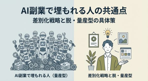「AI副業で稼げるらしい」という話は聞くけれど、具体的に何をどれくらいやれば月5万円に届くのか。そこが見えないまま情報収集だけが続いている人は多いと思います。 私自身、会社員として働きながらAI副業に…